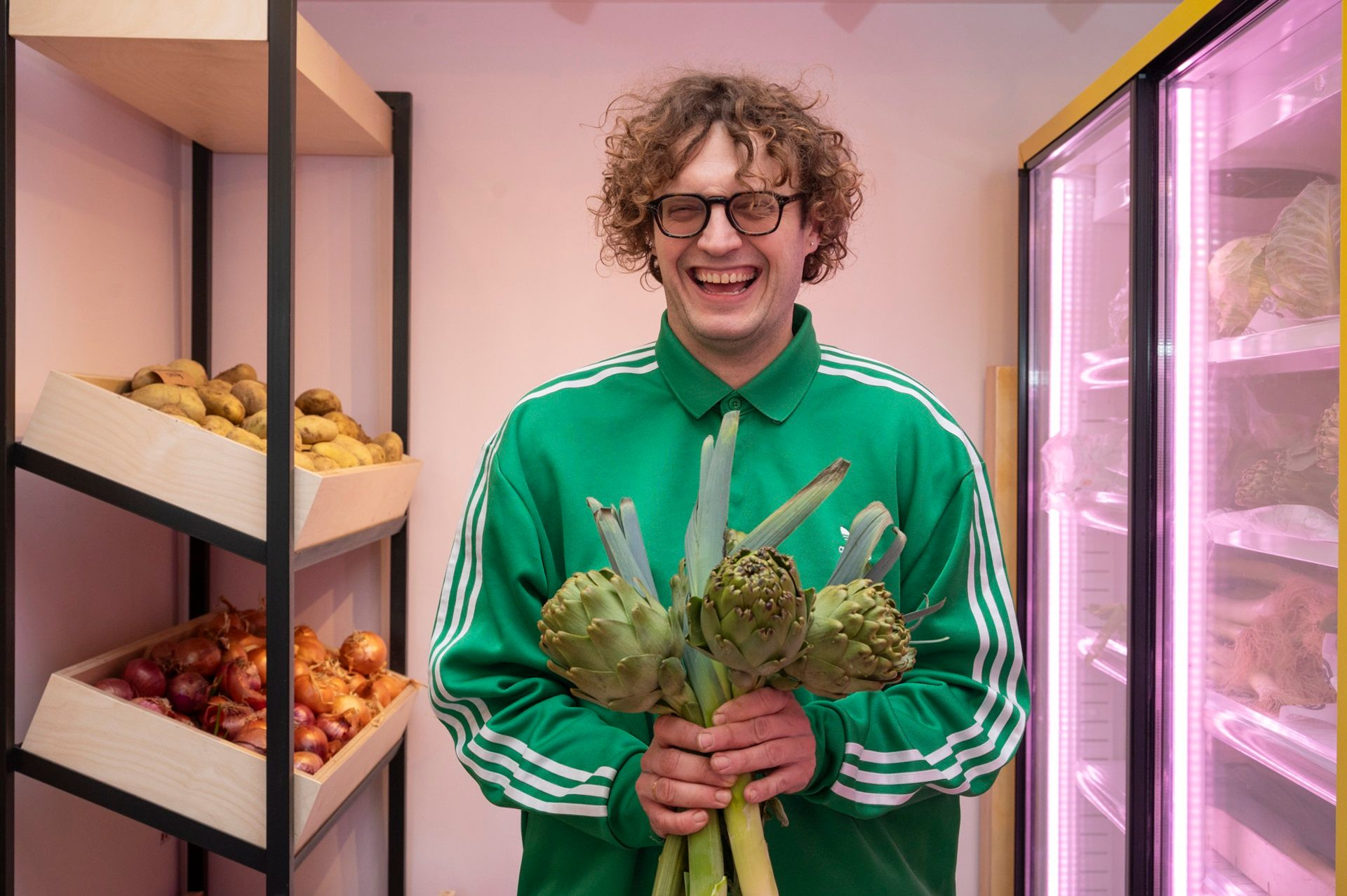 Στο μανάβικο η σχέση με το φαγητό ξαναβρίσκει τον αυθεντικό της χαρακτήρα – γίνεται εμπειρία, όχι απλώς συναλλαγή, όπως επισημαίνει ο Αλέξανδρος Γκιγκόπουλος, ιδιοκτήτης του νεοσύστατου Polyamorous Coffee & Grocery.