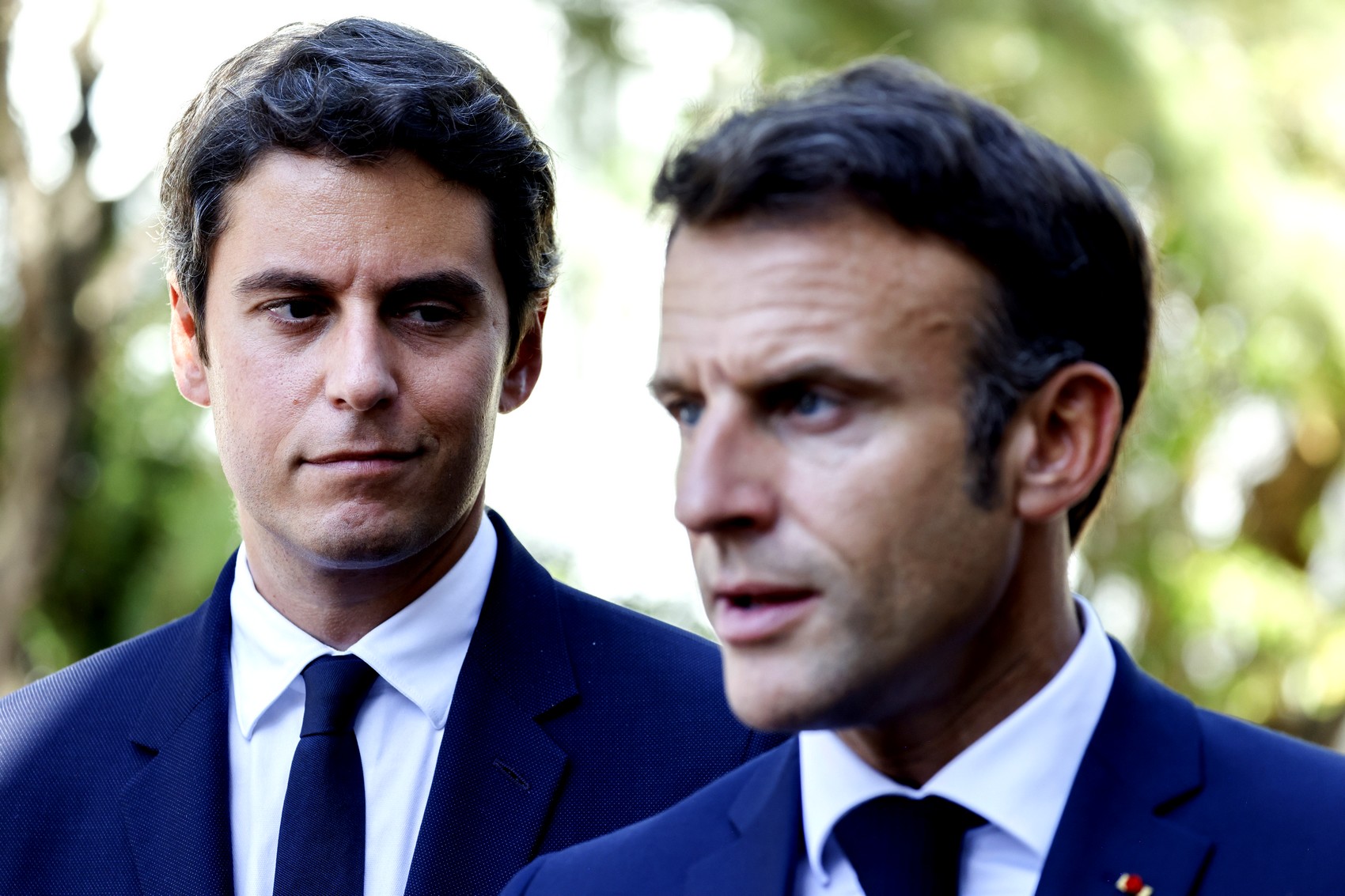 Gabriel Attal - Emmanuel Macron Ludovic Marin, Pool via AP