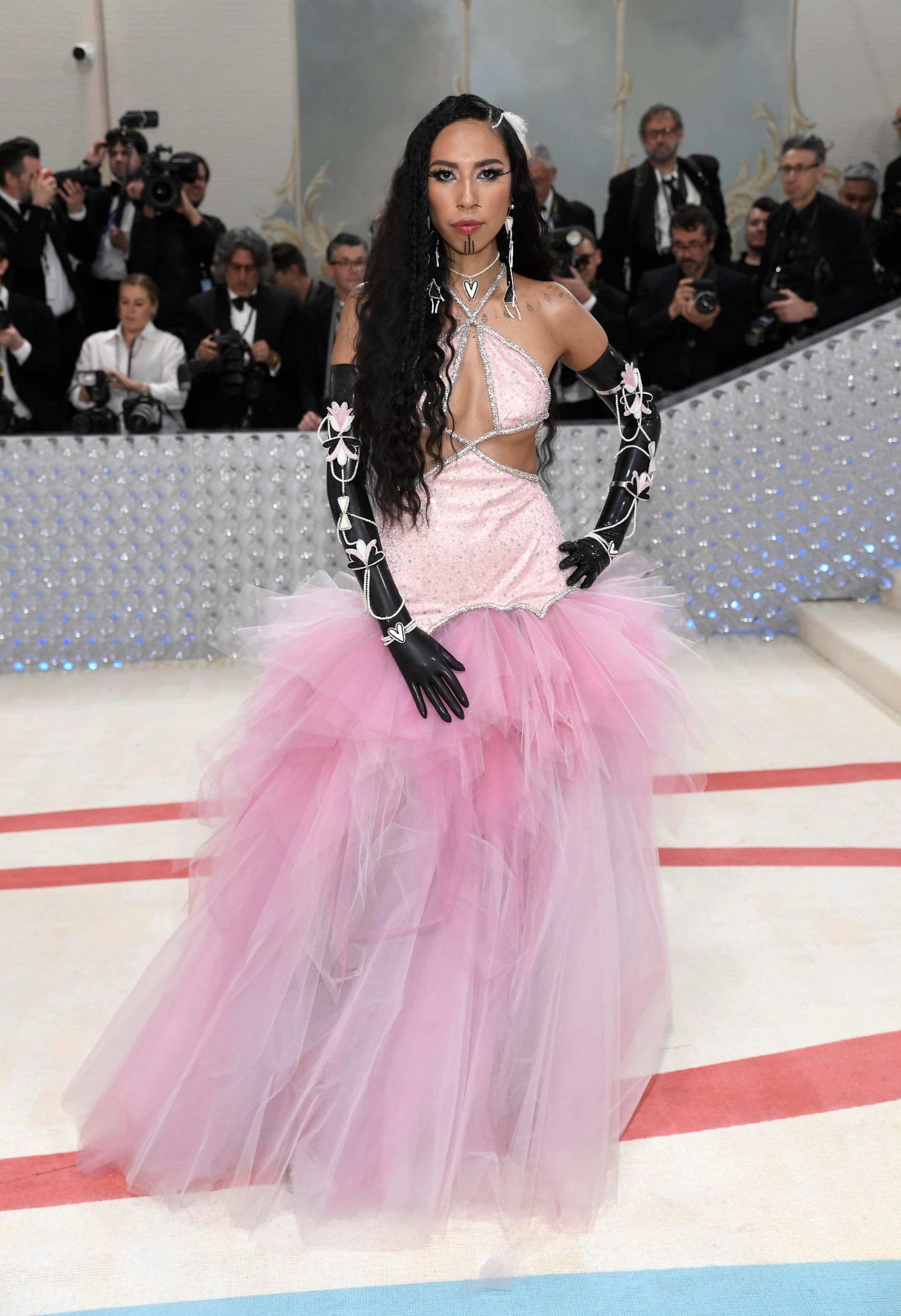 Το μοντέλο έχει διακριτικά γεωμετρικά τατουάζ στο πηγούνι, τα οποία ονομάζονται “Yidįįłtoo” και είναι ιερά στην κουλτούρα της φυλής της στην Αλάσκα, και τα οποία “χτυπήθηκαν” στο χέρι από τη μητέρα της σε ένα τελετουργικό ενηλικίωσης.