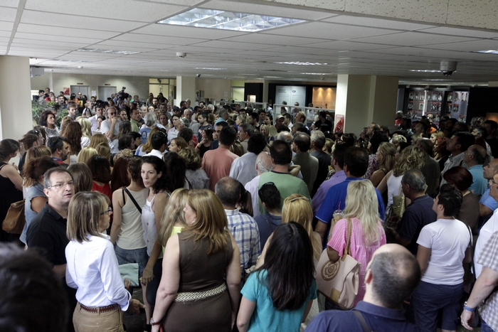 Εκείνο το βράδυ της Τρίτης “έπεσε” το ψηφιακό σήμα της δημόσιας τηλεόρασης, σε εφαρμογή της απόφασης της κυβέρνησης για προσωρινό κλείσιμο της ΕΡΤ και επαναφορά της σε τρεις μήνες με νέα μορφή και κατόπιν μαζικών απολύσεων. 2.656 συνολικά.