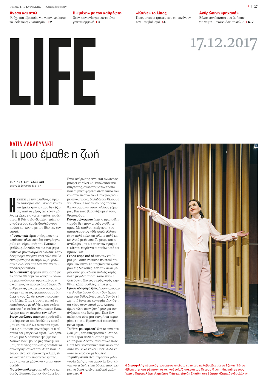 Το ειδικό ένθετο για τον σύγχρονο τρόπο ζωής φιλοξενεί αυτή την εβδομάδα την Κάτια Δανδουλάκη.  Μαζί κυκλοφορούν ειδικά θέματα για τη μόδα, τη ψυχολογία, τη διατροφή, το fitness, την επιστήμη αλλά και θέμα για τον θαυμαστό κόσμο του εγκεφάλου.