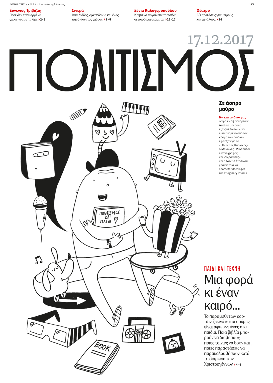 Θέατρο, βιβλίο, μουσική, κινηματογράφος και ό,τι αφορά τις τέχνες σε ένα πλούσιο ένθετο 16 σελίδων. Αυτή την Κυριακή έρχεται με συνέντευξη του “εθνικού μας παραμυθά” Ευγένιου Τριβιζά. Μαζί οι επιλογές των καλύτερων παιδικών θεατρικών παραστάσεων αλλά και αφιέρωμα στο παιδικό σινεμά.