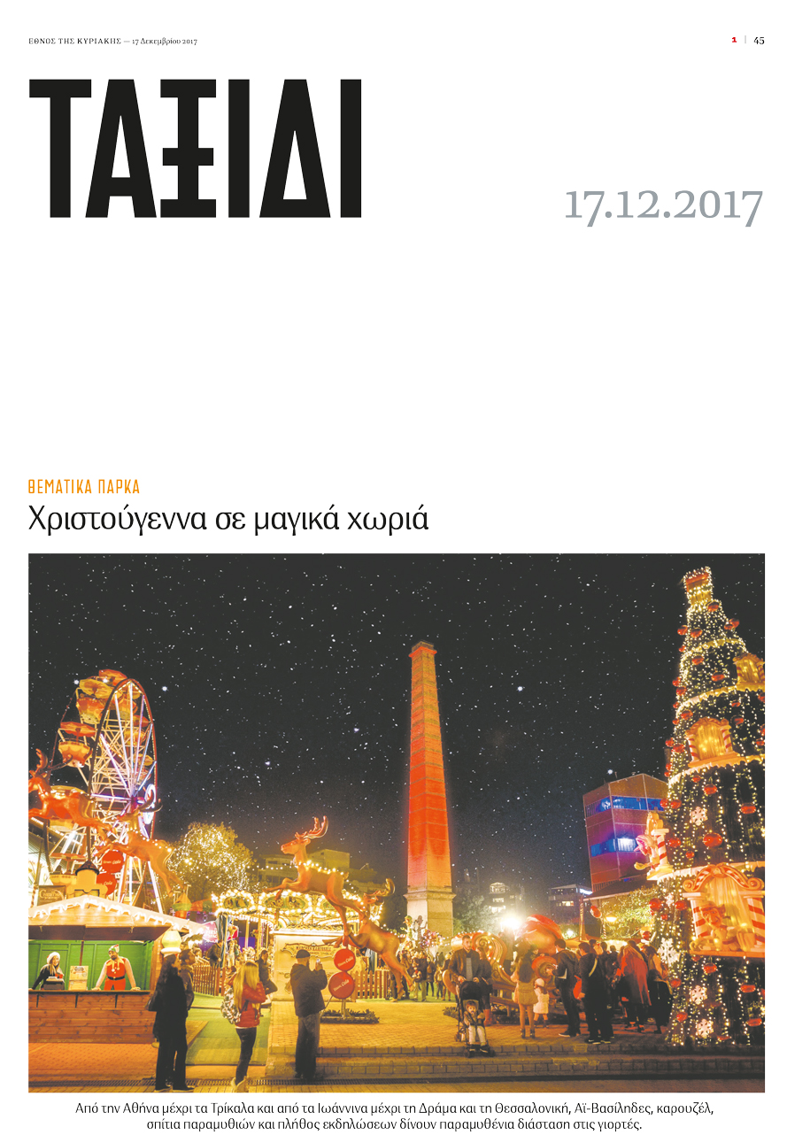 Το ειδικό ένθετο με προτάσεις για τις πιο ωραίες αποδράσεις από την καθημερινότητα, μας ταξιδεύει στον “Μύλο των Ξωτικών” στα Τρίκαλα, στην χριστουγεννιάτικη “Ονειρούπολη” της Δράμας και στα Ιωάννινα τα οποία είναι φέτος πιο εορταστικά από ποτέ!