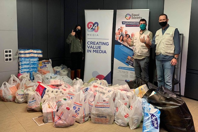 Πιστή στις αρχές της και με έντονο αίσθημα κοινωνικής ευθύνης, η 24MEDIA στήριξε και φέτος έμπρακτα τον Μη Κερδοσκοπικό Οργανισμό “Equal Society”, θέλοντας να συνεισφέρει στις ευπαθείς κοινωνικά ομάδες. Φέτος, οι εργαζόμενοι της 24MEDIA στήριξαν το Κοινωνικό Συσσίτιο – «Δομή Ανθρώπων Γεύματα της Equal Society» συλλέγοντας τρόφιμα και αγαθά πρώτης ανάγκης ώστε να ενισχύσουν το πολύτιμο έργο της Equal Society και να βοηθήσουν οικογένειες με δυσκολίες διαβίωσης.