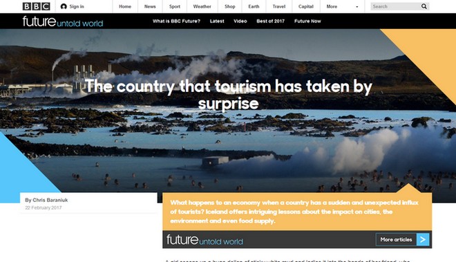 Η τράπεζα Morgan Stanley ‘πιάστηκε’ από το γεγονός ότι η Ισλανδία αποτελεί μια χώρα παράδειγμα ξαφνικής και απροσδόκητης εισροής τουριστών. Έτσι, σε συνεργασία με το BBC, έκανε sponsored ένα αφιέρωμα που ήξερε ότι θα διαβαστεί λόγω του ενδιαφέροντος περιεχομένου, ακόμα κι αν αυτό δεν σχετιζόταν τόσο άμεσα με το ίδιο το προϊόν, δηλαδή την τράπεζα.