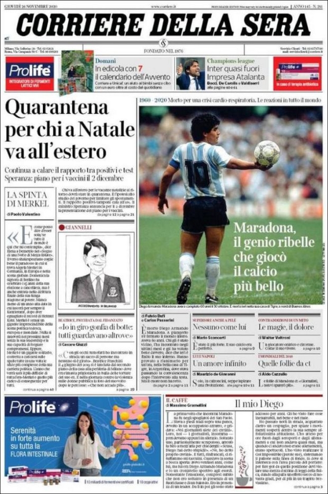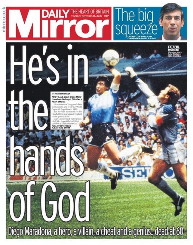 Μαραντόνα: Αποχαιρετισμός στον Θεό στα πρωτοσέλιδα του διεθνή Τύπου