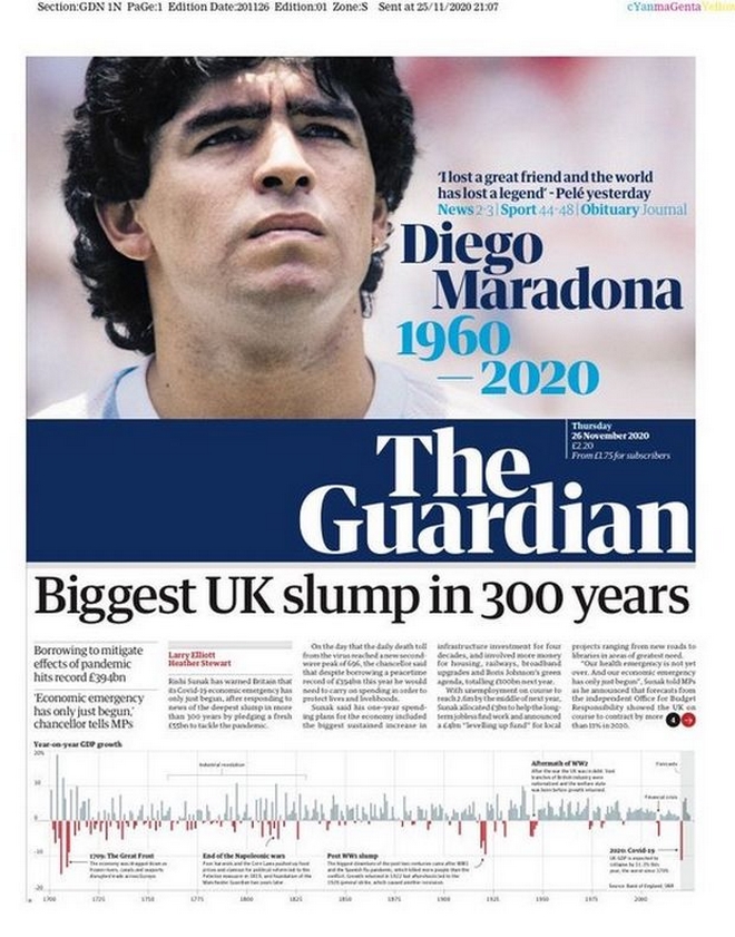 Ο Ντιέγκο Μαραντόνα έφυγε από τη ζωή σε ηλικία 60 ετών και τα πρωτοσέλιδα των εφημερίδων σε όλο τον κόσμο είναι αφιερωμένα σε εκείνον.
