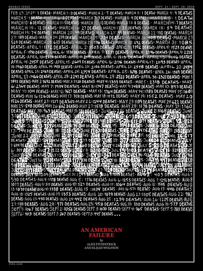 Το εξώφυλλο του αμερικανικού περιοδικού TIME αποτίει φόρο τιμής στους νεκρούς της πανδημίας που στις ΗΠΑ πλησιάζουν τους 200.000 και για δεύτερη φορά στην ιστορία του τοποθετείται σε μαύρο πλαίσιο.
