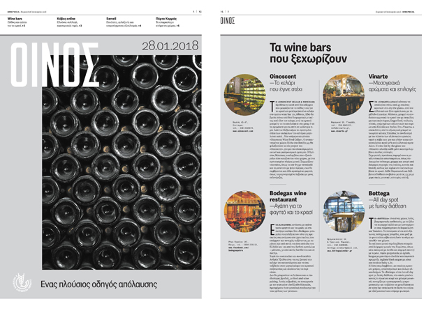 Επιλεγμένες κάβες, online επιχειρήσεις, winebars, κτήματα, οινοποιεία και εκθέσεις οίνου. Ένας πλήρης οδηγός-απόλαυσης για το κρασί, αυτή την Κυριακή 28 Ιανουαρίου στο “ΕΘΝΟΣ της Κυριακής”.
