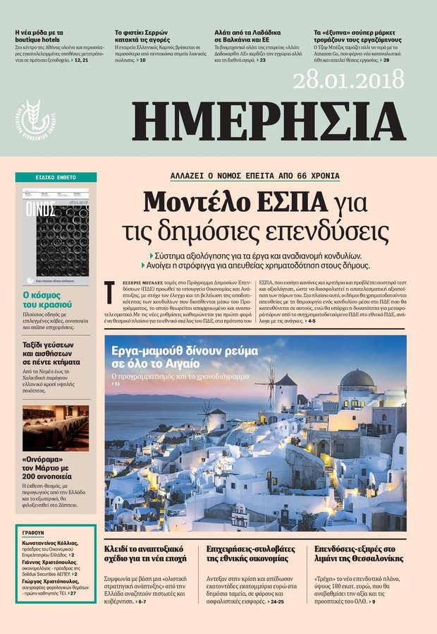 Πλούσια ένθετα αυτή την Κυριακή 28 Ιανουαρίου με το ΕΘΝΟΣ, ανάμεσά τους το αγαπημένο TV ΕΘΝΟΣ αλλά και η ΗΜΕΡΗΣΙΑ στην οποία θα βρείτε έναν πλούσιο οδηγό-απόλαυσης για το κρασί!
