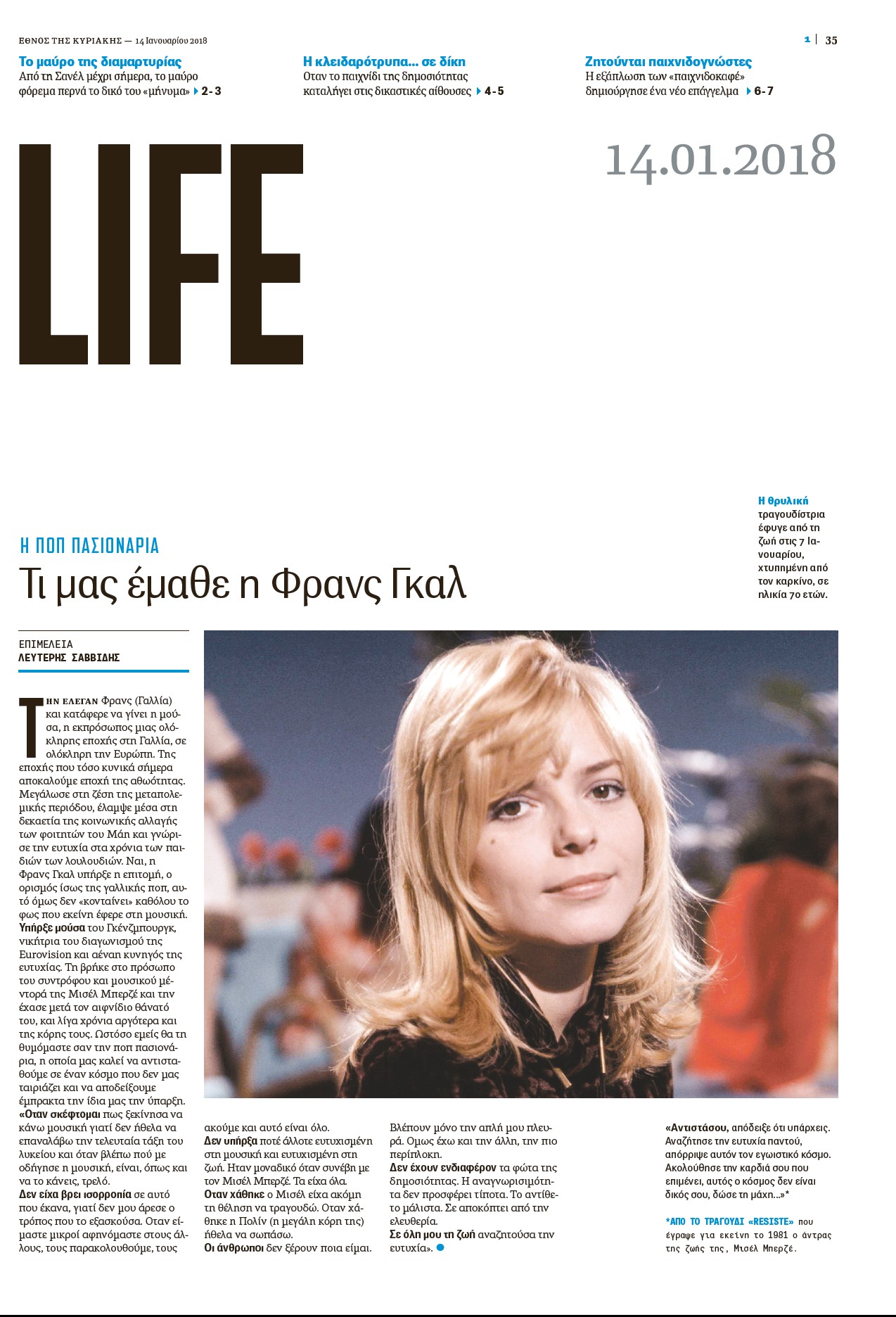 Το ειδικό ένθετο για τον σύγχρονο τρόπο ζωής  με αφορμή την απονομή των Χρυσών Σφαιρών, κάνει μια ανασκόπηση στο μικρό μαύρο φόρεμα και την μοναδική του επίδραση στον χώρο της μόδας. Ακόμα, “Όταν οι επώνυμοι καταλήγουν στις αίθουσες των δικαστηρίων”: Το παιχνίδι των επωνύμων με τη δημοσιότητα, αλλά και η δίψα μέσων ενημέρωσης για την λεγόμενη κλειδαρότρυπα δεν είναι καινούριο. Υπάρχουν όμως και εκείνες οι περιπτώσεις που ο υπερβάλλοντας ζήλος, η απερισκεψία ή μια κακή στιγμή οδήγησαν στα άκρα και στις δικαστικές αίθουσες.