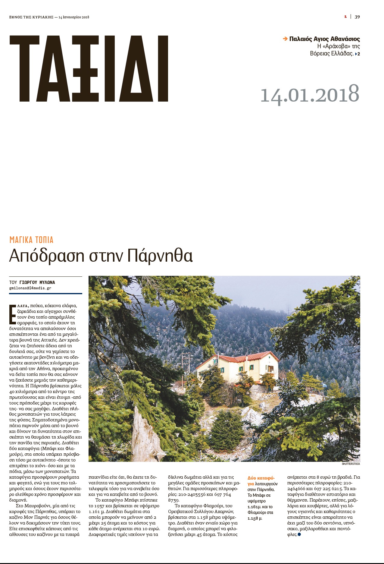 Το ειδικό ένθετο με προτάσεις για τις πιο ωραίες αποδράσεις από την καθημερινότητα, μας πάει Πάρνηθα. Έλατα, πεύκα, κόκκινα ελάφια, ζαρκάδια και αίγαγροι συνθέτουν ένα τοπίο απαράμιλλης ομορφιάς το οποίο έχουν τη δυνατότητα να απολαύσουν όσοι επισκέπτονται ένα από τα μεγαλύτερα βουνά της Αττικής. Ακόμη, “Παλιός Άγιος Αθανάσιος”, ο οποίος συγκεντρώνει την αφρόκρεμα της Θεσσαλονίκης και όχι μόνο! Σε συνδυασμό με το χιονοδρομικό κέντρο Καϊμακτσαλάν αποτελεί πόλο έλξης για κάθε ηλικία.