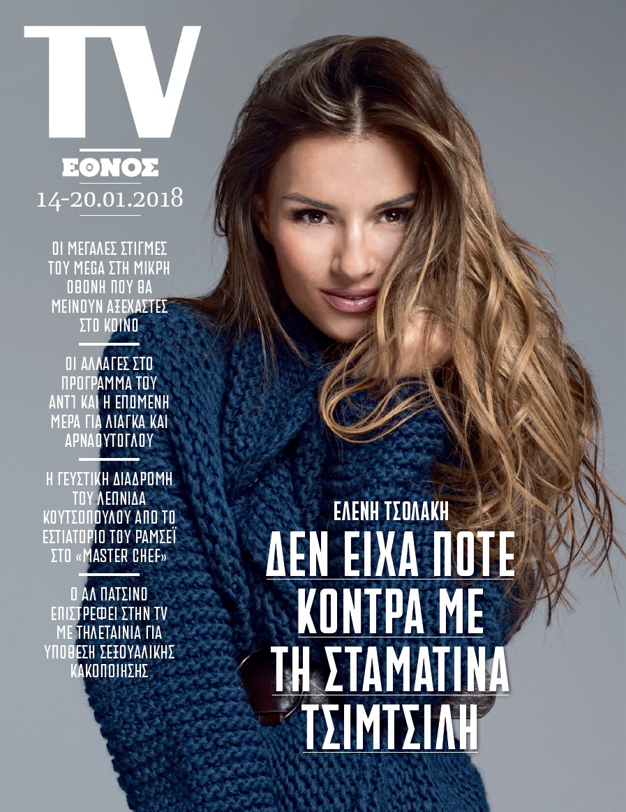 Το αγαπημένο περιοδικό με το αναλυτικό τηλεοπτικό πρόγραμμα της εβδομάδας φιλοξενεί αυτή την Κυριακή συνεντεύξεις της παρουσιάστριας του Alpha Ελένης Τσολάκη και του κριτή του “Master Chef” Λεωνίδα Κουτσόπουλου. Ακόμη παρασκήνιο από τις φετινές Χρυσές Σφαίρες και ρεπορτάζ για τις αλλαγές στο πρόγραμμα του ΑΝΤ1.