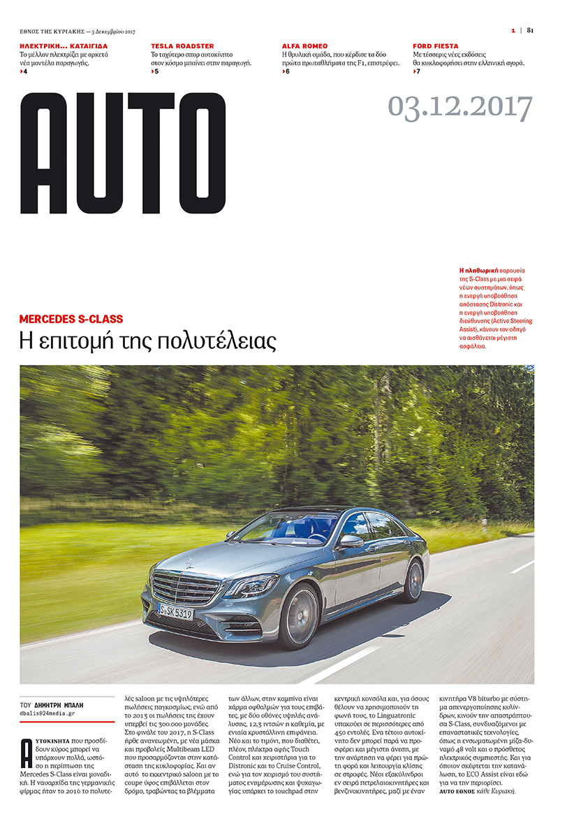 Το πόδι στο γκάζι και αυτή την Κυριακή με την επιτομή της πολυτέλειας που έχει το όνομα Mercedes S-Class. Ακόμα: BMW X2, η νέα είσοδος στα premium crossovers που ανεβάζετα standards της κατηγορίας αλλά και το ολοκαίνουργιο, πολυπρόσωπο και πολυτάλαντο Ford Fiesta.