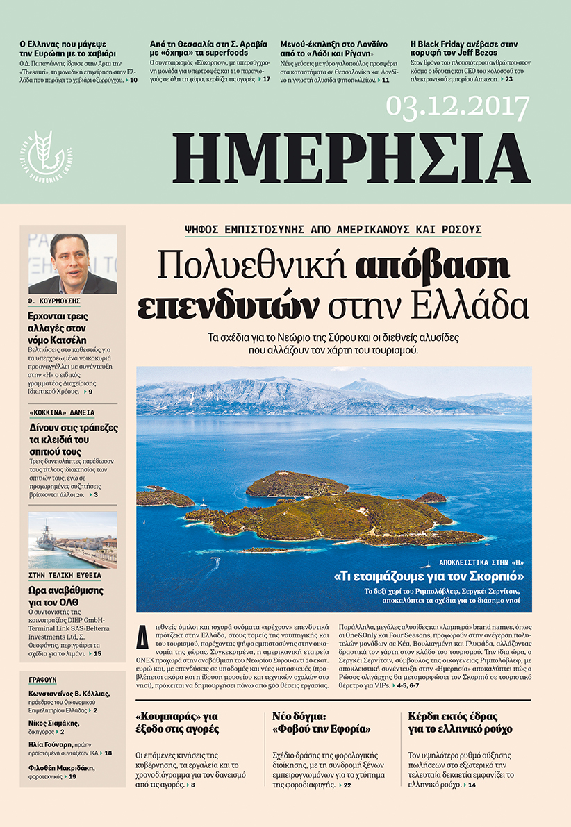 Η εφημερίδα με όλες τις εξελίξεις στην οικονομική και επιχειρηματική αγορά κυκλοφορεί αυτή την Κυριακή με τα έργα που αλλάζουν το χάρτη του ελληνικού τουρισμού, το σχέδιο για την “αναγέννηση” του Νεώριου Σύρου αλλά και συνέντευξη του Ειδικού Γραμματέα Διαχείρισης Ιδιωτικού Χρέους, Φώτη Κουρμούση.