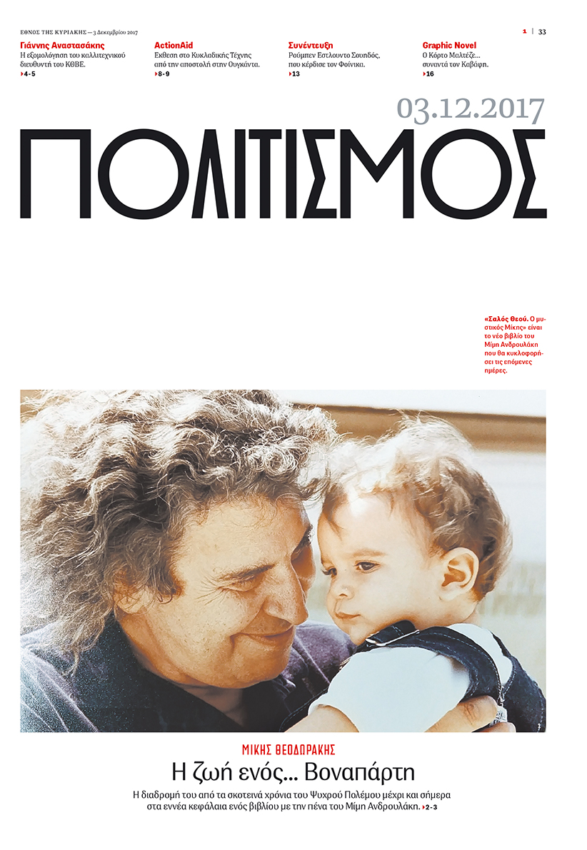 Θέατρο, βιβλίο, μουσική, κινηματογράφος και ό,τι αφορά τις τέχνες σε ένα πλούσιο ένθετο 16 σελίδων. Αυτή την Κυριακή έρχεται με συνέντευξη του καλλιτεχνικού δ/ντη του Κρατικού Θεάτρου Β. Ελλάδας, Γιάννη Αναστασάκη και την παρουσίαση του βιβλίου του Μίμη Ανδρουλάκη για τον Μίκη Θεοδωράκη.