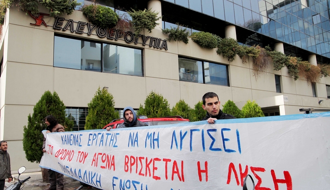 ΣΥΓΚΕΝΤΡΩΣΗ ΔΙΑΜΑΡΤΥΡΙΑΣ ΤΩΝ ΠΡΩΗΝ ΕΡΓΑΖΟΜΕΝΩΝ ΤΗΣ ΕΛΕΥΘΕΡΟΤΥΠΙΑΣ ΕΞΩ ΑΠΟ ΤΑ ΓΡΑΦΕΙΑ ΤΗΣ ΕΦΗΜΕΡΙΔΑΣ (ΚΑΤΩΜΕΡΗΣ ΚΩΣΤΑΣ/EUROKINISSI) G4PHOTOS