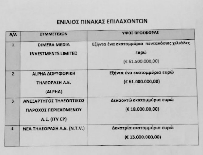 Όπως προέκυψε από την ανακοίνωση του γγ Ενημέρωσης και Επικοινωνία Λευτέρη Κρέτσου, το ποσό των 246 εκατ. διαμορφώνεται ανά τηλεοπτική άδεια ως εξής:
