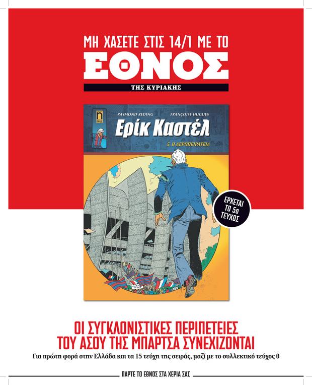 Και τώρα ετοιμαστείτε για τη συνέχεια των περιπετειών του Ερίκ Καστέλ: Μην χάσετε αυτή την Κυριακή 14/1 με το “Eθνος της Κυριακής” το 5ο τεύχος με τον τίτλο “Η αεροπειρατεία”.