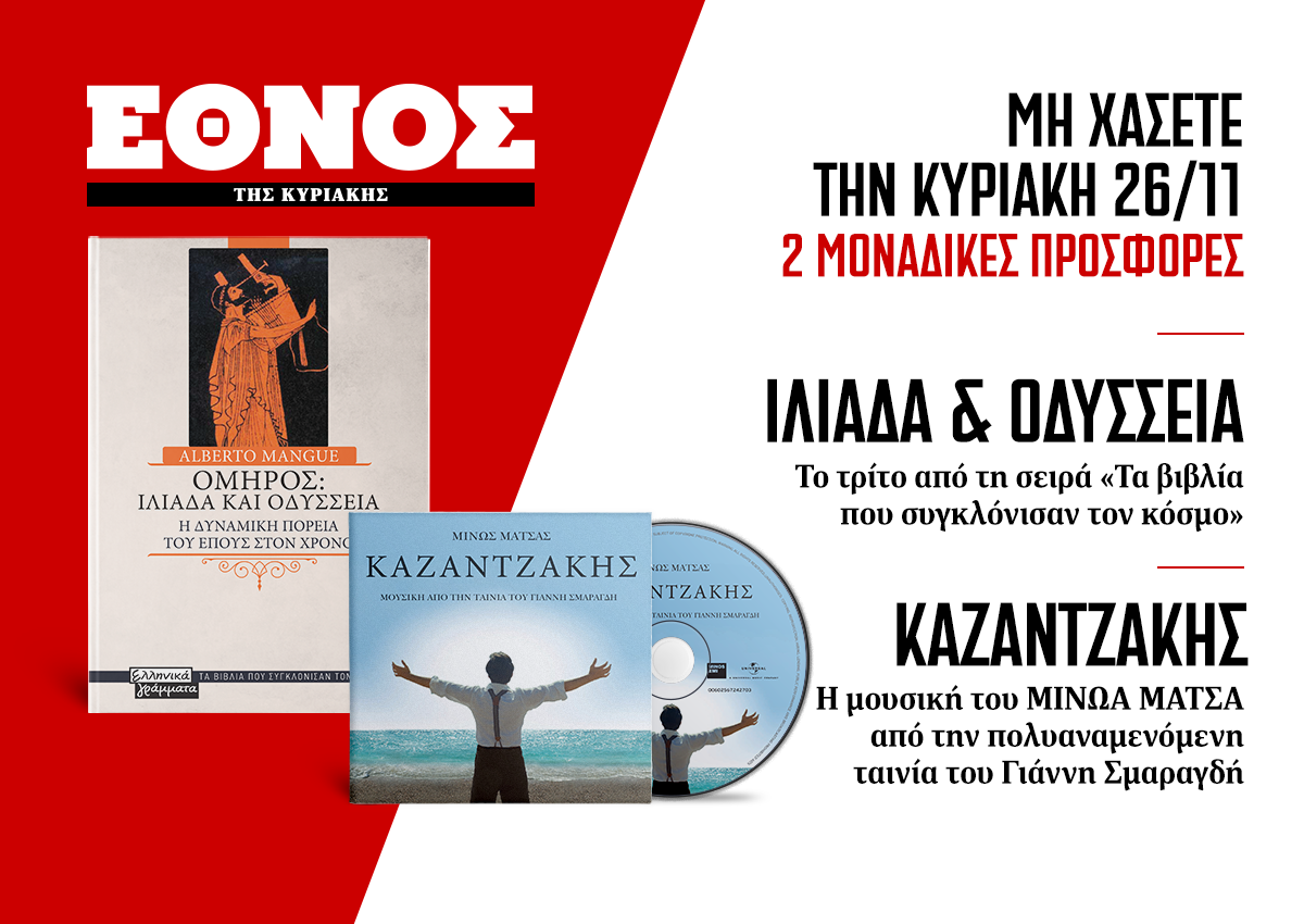 Mην χάσετε το ΕΘΝΟΣ της Κυριακής! Στην ειδική έκδοση των 4,25 ευρώ δύο ξεχωριστές προσφορές και αυτήν την Κυριακή.