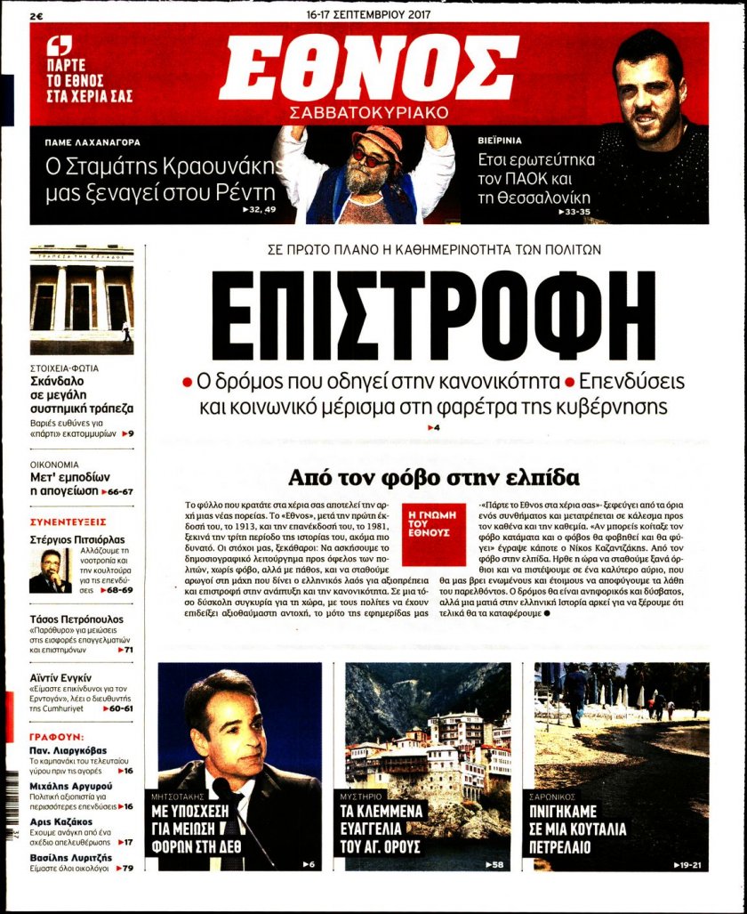 To Έθνος, επανακυκλοφόρησε στις 16 Σεπτεμβρίου 2017 υπό την ιδιοκτησία της Dimera εκδοτικής και το management της 24MEDIA.