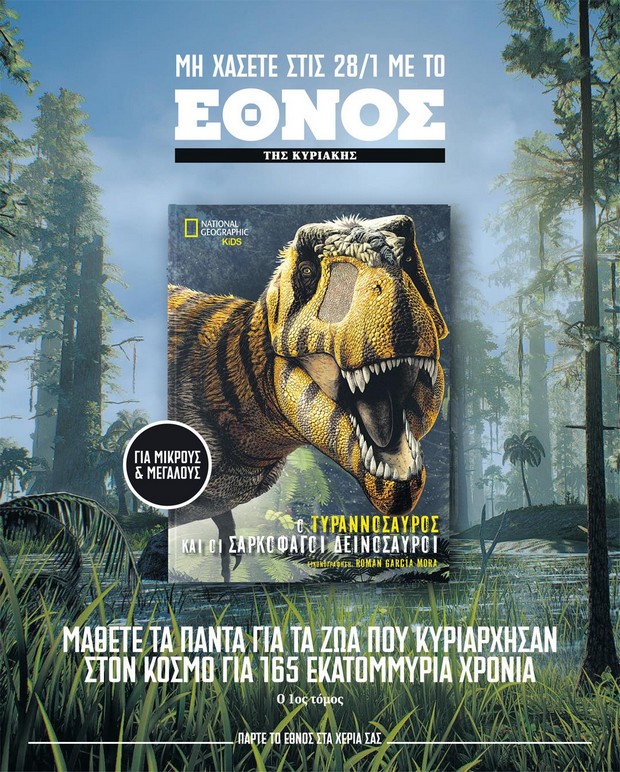 Στις 28 Ιανουαρίου το ΕΘΝΟΣ της Κυριακής κυκλοφορεί με προσφορές που θα λατρέψουν τόσο οι μικροί όσο και οι μεγάλοι. Το πρώτο βιβλίο από τα τέσσερα της σειράς του “National Geographic Kids” για τους δεινόσαυρους, το άλμπουμ της Panini για τη Super League 2017-18 και το 7ο σπάνιο τεύχος του Ερίκ Καστέλ με τον τίτλο “Η νύχτα του Τιμπιντάμπο”.