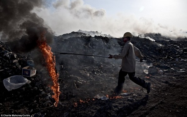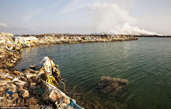 Οι τοξικοί καπνοί προέρχονται από την ασταμάτητη καύση απορριμμάτων. Σωροί από «καταναλωτικά συντρίμμια», όπως μπουκάλια, σακούλες, πλαστικά δεν θυμίζουν σε τίποτα το ειδυλλιακό τοπίο που βρίσκεται μια ανάσα από την αποπνικτική ατμόσφαιρα της χωματερής.