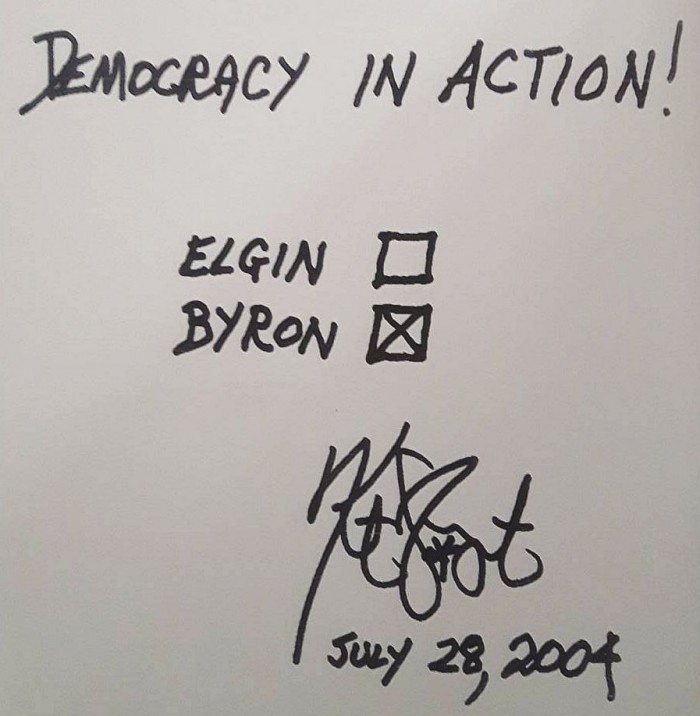 Λίγοι συμπατριώτες μας γνωρίζουν ότι πρώτος ο Λόρδος Βύρων ύψωσε τη φωνή του κατά της λεηλασίας του Παρθενώνα από τον Λόρδο Έλγιν. Δύο αιώνες αργότερα, ο αμερικάνος συγγραφέας Kurt Vonnegut τάχθηκε υπέρ του Βύρωνα και απάντησε με τον εξής τρόπο στην έκκληση του Συνδέσμου «Μπάιρον»: