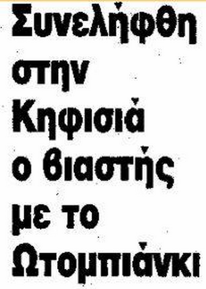 Στις 7 Οκτωβρίου του 1983 η αστυνομία, έχοντας στήσει ολόκληρη επιχείρηση, με «δολώματα» γυναίκες αξιωματικούς, κατάφερε να συλλάβει τον επονομαζόμενο «δράκο με το σκοινί», που είχε τρομοκρατήσει τις γυναίκες στην Αττική. Ο καταζητούμενος συνήθιζε να επιτίθεται σε γυναίκες, να τις αναισθητοποιεί σφίγγοντας το λαιμό τους με ένα σκοινί και να τις βιάζει ενώ ήταν αναίσθητες.