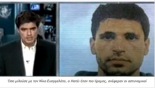Ο Ματέι, μόλις αιχμαλώτισε την κοπέλα και τον αρραβωνιαστικό της, τηλεφώνησε στον τηλεοπτικό ΣΚΑΙ και αφού συνδέθηκε με τον διευθυντή ειδήσεων Σταμάτη Μαλέλη, απαίτησε να βγει στο αέρα. Μέσα σε δευτερόλεπτα ο διευθυντής αποφάσισε να κάνει πράξη το αίτημα του κακοποιού. Ο Νίκος Ευαγγελάτος πήρε τη θέση του στο στούντιο και άρχισε να συνομιλεί τηλεφωνικά με τον κακοποιό. Ο Σταμάτης Μαλέλης σε συνέντευξη του μετά από το περιστατικό ανέφερε πως λειτούργησε το δημοσιογραφικό του ένστικτο και πήρε την απόφαση να μεταδώσει ζωντανά την ομηρία. Για μια ώρα ο Ματέι συνομιλούσε με τον Νίκο Ευαγγελάτο, ενώ το πανελλήνιο παρακολουθούσε ζωντανά τις εξελίξεις. Ωστόσο, εκείνη την πρώτη ώρα, ούτε η αστυνομία, αλλά ούτε και η αρμόδια τηλεοπτική αρχή, το Εθνικό Συμβούλιο Ραδιοτηλεόρασης, ζήτησαν να διακοπεί το τηλεφώνημα. «Την προηγούμενη φορά σεβαστήκανε τη ζωή του αστυνομικού και με άφησαν να φύγω. Τώρα κρατάω τέσσερις ανθρώπους», είπε στον Ν. Ευαγγελάτο ο κακοποιός και συνέχισε: «Μη φοβάστε, κακό δε θα κάνω σε κανέναν. Να διαπραγματευτώ θέλω και να με αφήσουν να φύγω». Η συνομιλία συνεχιζόταν χωρίς την επέμβαση της αστυνομίας και ο Ρουμάνος ζήτησε 500.000 δραχμές  (περίπου 1500 ευρώ), τονίζοντας ότι ήταν μόνο για τα έξοδά του. Εν τω μεταξύ, μετά από προσωπική εντολή του τότε πρωθυπουργού Κώστα Σημίτη, έφτασε στη οδό Νιόβης ο διοικητής της Ασφάλειας Θεόδωρος Παπαφίλης, ο οποίος ανέλαβε τις επιτόπιες διαπραγματεύσεις. Η σύνδεση με τον ΣΚΑΙ συνεχιζόταν κανονικά.
