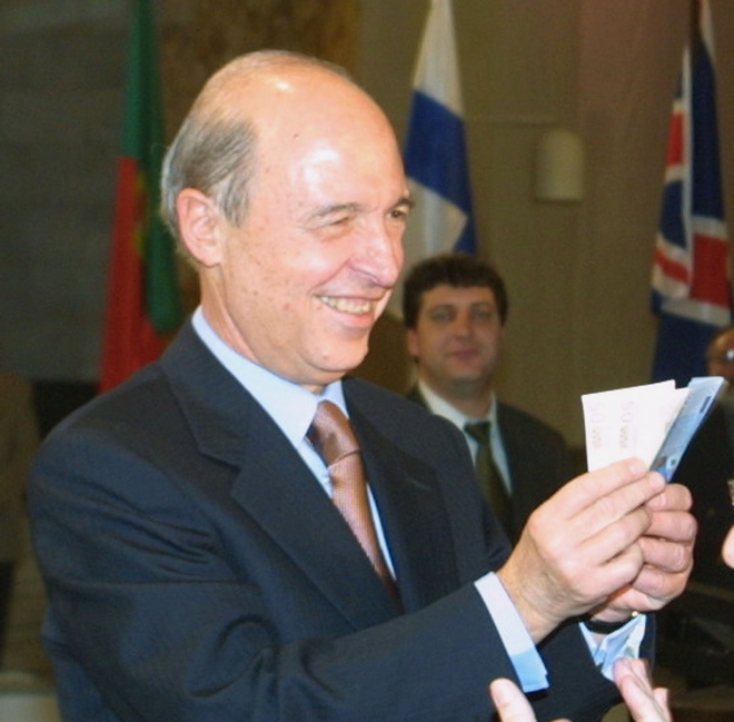 Τα ξημερώματα της Πρωτοχρονιάς του 2002, ο πρώην πρωθυπουργός Κώστας Σημίτης φωτογραφίστηκε δίπλα σε ΑΤΜ, κρατώντας στα χέρια του χαρτονομίσματα του νέου νομίσματος της χώρας, του ευρώ. Δίπλα του, ο τότε διοικητής της Τραπέζης της Ελλάδος Λουκάς Παπαδήμος, χειροκροτούσε.