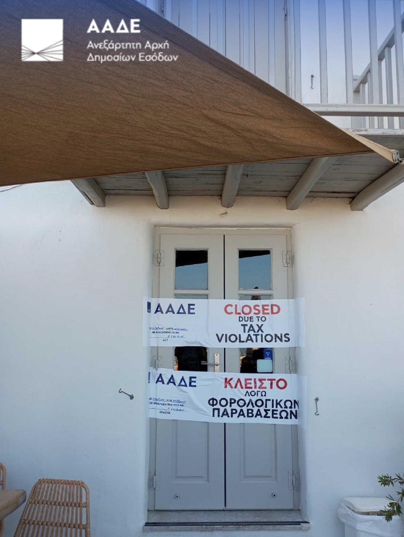 • Στην Πάρο, σε γνωστό εστιατόριο δεν εκδόθηκαν 3 παραστατικά αξίας άνω των 1.800 ευρώ.