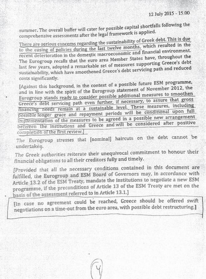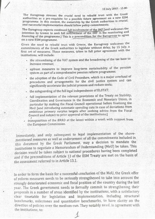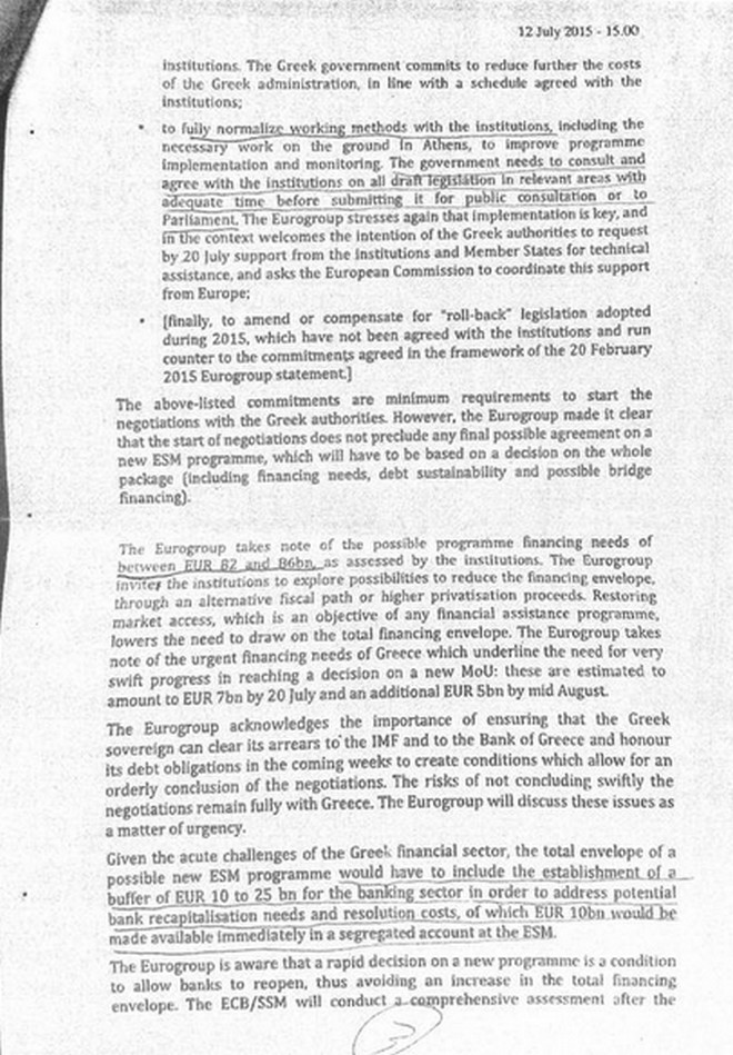 Υπενθυμίζεται, πως λίγο νωρίτερα, διέρρευσε το προσχέδιο του Eurogroup, που προβλέπει τις χρηματοδοτικές ανάγκες, για την κάλυψη του νέου προγράμματος της Ελλάδας.