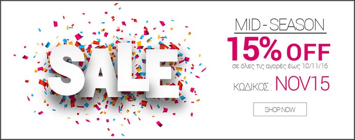 Χρησιμοποιήστε τον κωδικό NOV15 και επωφεληθείτε εκπτώσεων 15%