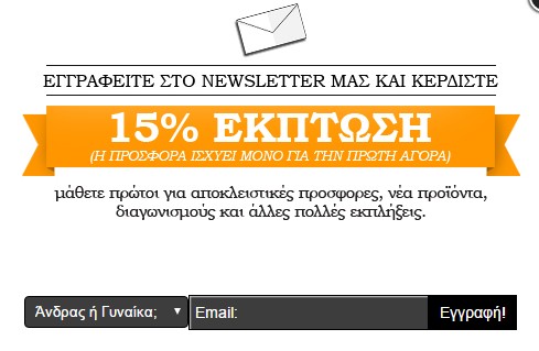 Εγγραφείτε στο newsletter και επωφεληθείτε 15% έκπτωση στην πρώτη αγορά