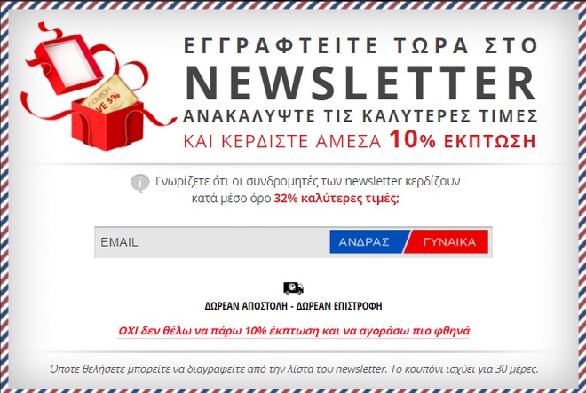*Κερδίστε έκπτωση 5€ με την εγγραφή σας στο newsletter