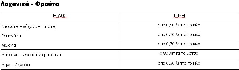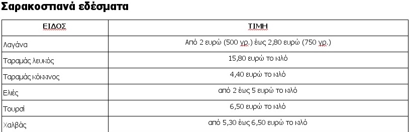 Ακολουθούν αναλυτικά οι τιμές για το Σαρακοστιανό τραπέζι: