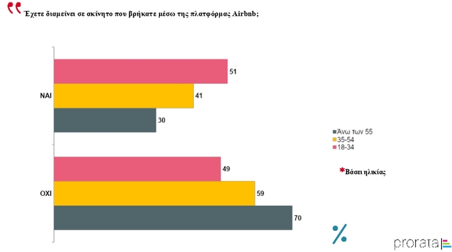Αρχικά, φαίνεται ότι επιβεβαιώνεται η αίσθηση ότι το Airbnb έχει «κατακτήσει» τις νεότερες γενιές. Ενδεικτικά, σύμφωνα με τα στοιχεία της έρευνας, 1 στους 2 ερωτώμενους ηλικίας 18 έως και 34 ετών και 4 στους 5 ηλικίας 35 έως 54 ετών έχει διαμείνει σε κατάλυμα μέσω της πλατφόρμας Airbnb.