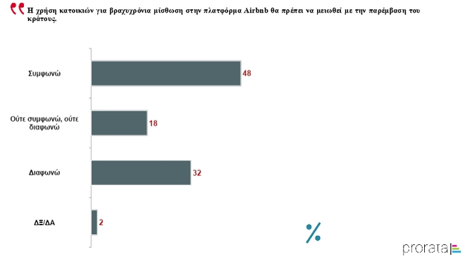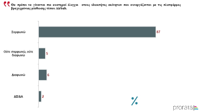 Κυρίαρχο ζήτημα και στην περίπτωση του Airbnb είναι το ζήτημα της φοροδιαφυγής και των αυστηρότερων ελέγχων. Ενδεικτικά, το 87% των ερωτώμενων εκφράζει την άποψη ότι θα πρέπει να γίνονται πιο αυστηροί έλεγχοι στους ιδιοκτήτες ακίνητων που συνεργάζονται με τις πλατφόρμες βραχυχρόνιας μίσθωσης τύπου Airbnb, ενώ το 48% αυτών πιστεύει ότι το κράτος πρέπει να παρέμβει με στόχο τον περιορισμό της χρήσης κατοικιών για βραχυχρόνια μίσθωση στην πλατφόρμα Αirbnb, άποψη που είναι καθολικά αποδεκτή, μη επηρεαζόμενη για παράδειγμα από την περιφέρεια διαμονής.