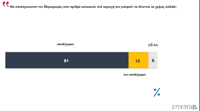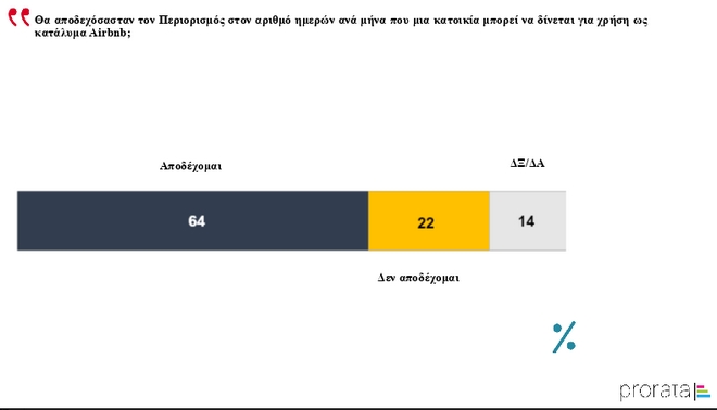Πιο συγκεκριμένα, σε σχέση με τα τρία ευρέως διαδεδομένα μέτρα που κυριαρχούν στη δημόσια συζήτηση τα τελευταία έτη, το 64% των ερωτώμενων απάντησε ότι θα αποδεχόταν περιορισμό στον αριθμό ημερών που ανά μήνα μια κατοικία μπορεί να δίνεται για χρήση ως κατάλυμα Airbnb και το 81% ότι θα αποδεχόταν περιορισμό στον αριθμό κατοικιών που ανά περιοχή μπορούν να δίνονται σε χρήση Airbnb. Ωστόσο, μόλις το 16% θα αποδεχόταν την υποχρέωση συγκατοίκησης του ιδιοκτήτη με τους ενοικιαστές, δηλαδή ένα μέτρο που παραπέμπει στην αρχική ιδέα της δημιουργίας της πλατφόρμας Αirbnb που δεν ήταν άλλη από τη «φιλοξενία μιας ημέρας» σε στρώματα αέρος που τοποθετούνταν από τους ενοικιαστές προς χρήση εντός του διαμερίσματος.