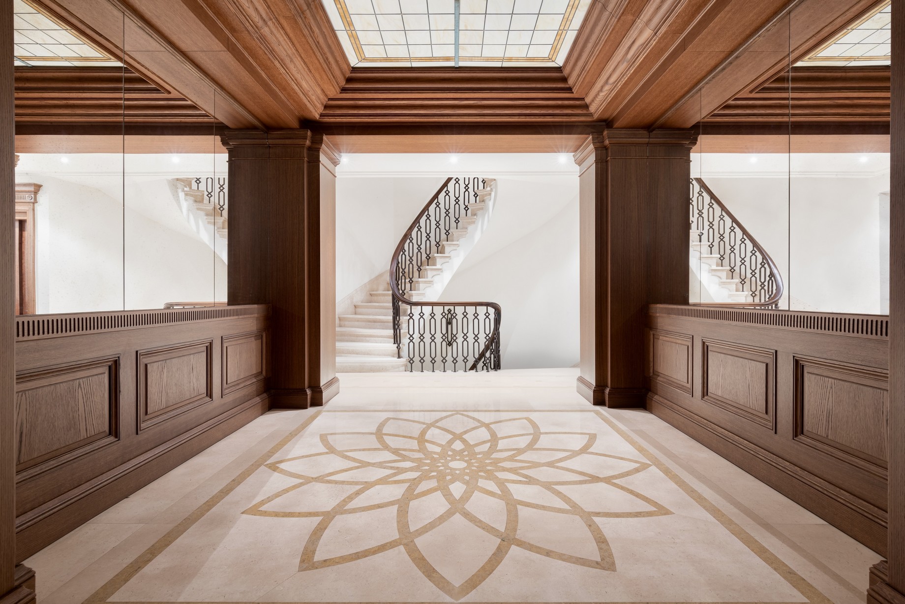Όπως αναφέρει ο οίκος, οι εσωτερικοί χώροι προσδίδουν μια αίσθηση μεγαλοπρέπειας με τη χρήση μαρμάρου και ξύλου σε όλη την ιδιοκτησία. Η μεγάλη σκάλα με τα μαρμάρινα σκαλοπάτια, το μασίφ ξύλο και το σιδερένιο κιγκλίδωμα είναι ένα εντυπωσιακό χαρακτηριστικό στο κέντρο αυτού του πολυτελούς κτιρίου.