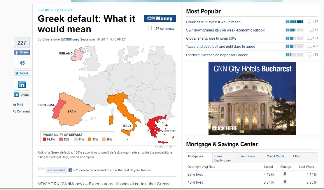 Μάλιστα, σύμφωνα με το δημοσίευμα, οι πιθανότητες χρεοκοπίας της χώρας μας έχουν ανέλθει στο 99,9%! Και αυτό το υποστηρίζει, επικαλούμενο επαγγελματίες της αγοράς ασφάλισης κινδύνου έναντι αθέτησης πληρωμών (credit default swap – CDS).