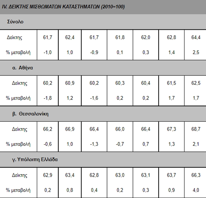 Κατά το α΄ εξάμηνο του 2022, τα μισθώματα των καταστημάτων για το σύνολο της χώρας αυξήθηκαν κατά 2,5% σε σχέση με το β΄ εξάμηνο του 2021 (προσωρινά στοιχεία). Με βάση τα αναθεωρημένα στοιχεία, τα μισθώματα καταστημάτων αυξήθηκαν κατά 0,3% το α΄ εξάμηνο του 2021 και κατά 1,4% το β΄ εξάμηνο του 2021, σε σχέση με το προηγούμενο εξάμηνο. Για το σύνολο του 2021 τα μισθώματα των καταστημάτων αυξήθηκαν με μέσο ετήσιο ρυθμό μεταβολής 1,0%.