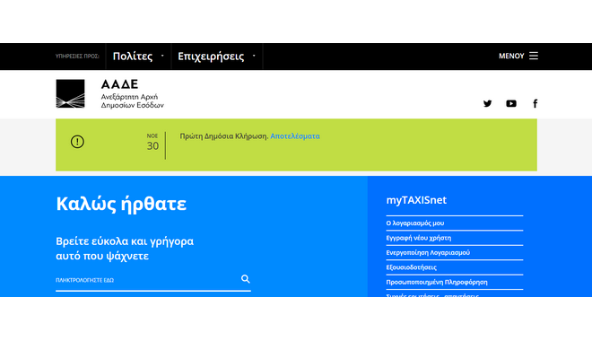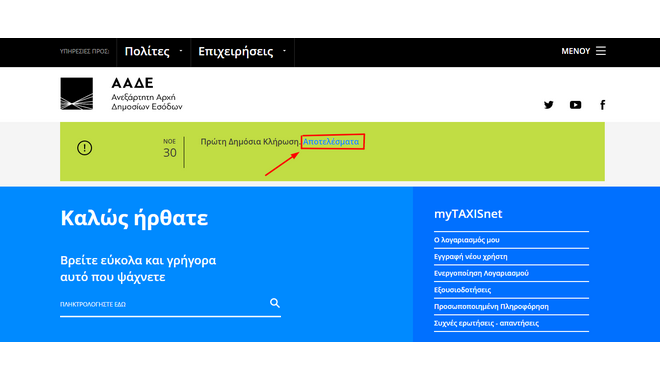 Οι τυχεροί θα ενημερωθούν με μήνυμα μέσω της Προσωποποιημένης Πληροφόρησης, ενώ μπορείτε ήδη να ελέγχετε εάν κερδίσατε μέσω της σελίδας της ΑΑΔΕ και ακολουθώντας τα παρακάτω βήματα:
