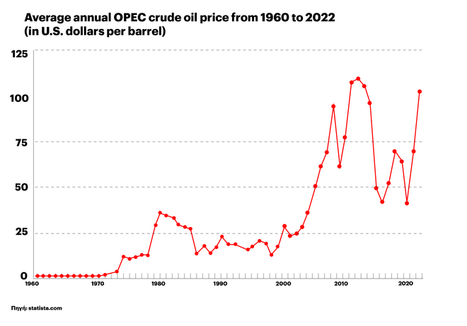 Η τιμή του πετρελαίου στις χώρες του ΟΠΕΚ 1969-2022