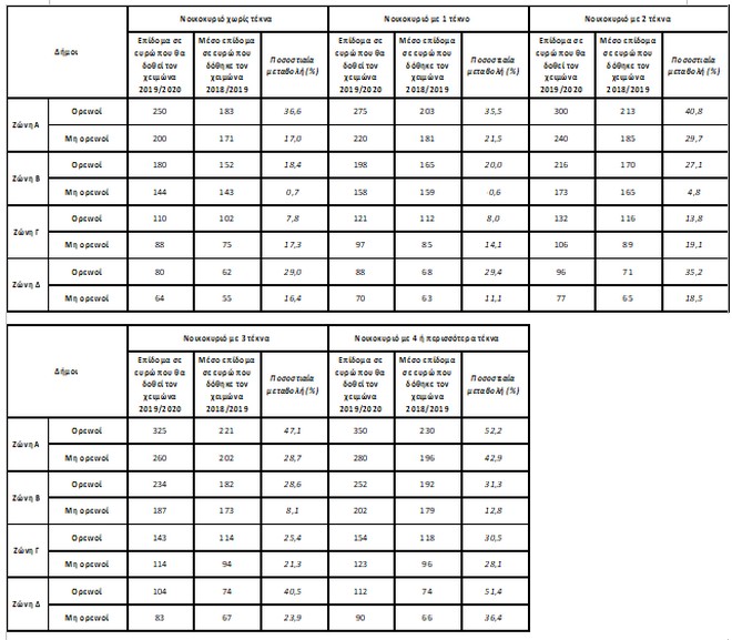Επιπλέον, φέτος για πρώτη φορά, θα λάβουν πρόσθετο επίδομα οι ορεινοί Δήμοι της Α΄ Ζώνης, που αντιμετωπίζονταν ως πεδινοί μέχρι τώρα.