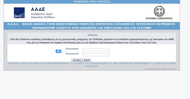 1. Ποιους κωδικούς θα πρέπει να χρησιμοποιήσω για να συνδεθώ με την Εφαρμογή Δικαιούχων του Επιδόματος πετρελαίου Θέρμανσης;