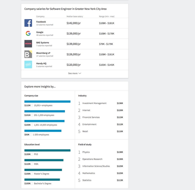 Μπορείτε να αναζητήσετε τους μισθούς με βάση τον τίτλο και την τοποθεσία, όπως για παράδειγμα «δημοσιογράφος στο Σαν Φραντσίσκο». Τα αποτελέσματα της αναζήτησης θα εμφανίσουν ανάλογα με τον αριθμό των εργαζομένων που έχουν αντίστοιχη θέση και οι οποίοι έχουν ανακοινώσει τα στοιχεία αυτά. Στη συνέχεια μπορείτε να φιλτράρετε περαιτέρω τα αποτελέσματα ανάλογα τη βιομηχανία και τα χρόνια εμπειρίας που έχετε.