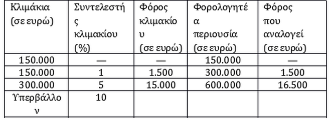 Συνεπώς, δεν είναι σαφές αν το συνολικό ποσό των 300.000 θα πρέπει να υπαχθεί σε φορολόγηση με τη γενική διάταξη, ήτοι με 10% (φόρος 300.000*10%=30.000 ευρώ), ή αν μόνο το υπερβάλλον των 50.000 θα πρέπει να φορολογηθεί με συντελεστή 10% (φόρος: 50.000*10% = 5.000) και το εναπομείναν ποσό των 250.000 να υπαχθεί στην κλίμακα (φόρος: (250.000-150.000)*1% = 1.000 ευρώ), με τη συνολική επιβάρυνση να ανέρχεται σε 6.000 ευρώ (5.000 + 1.000).
