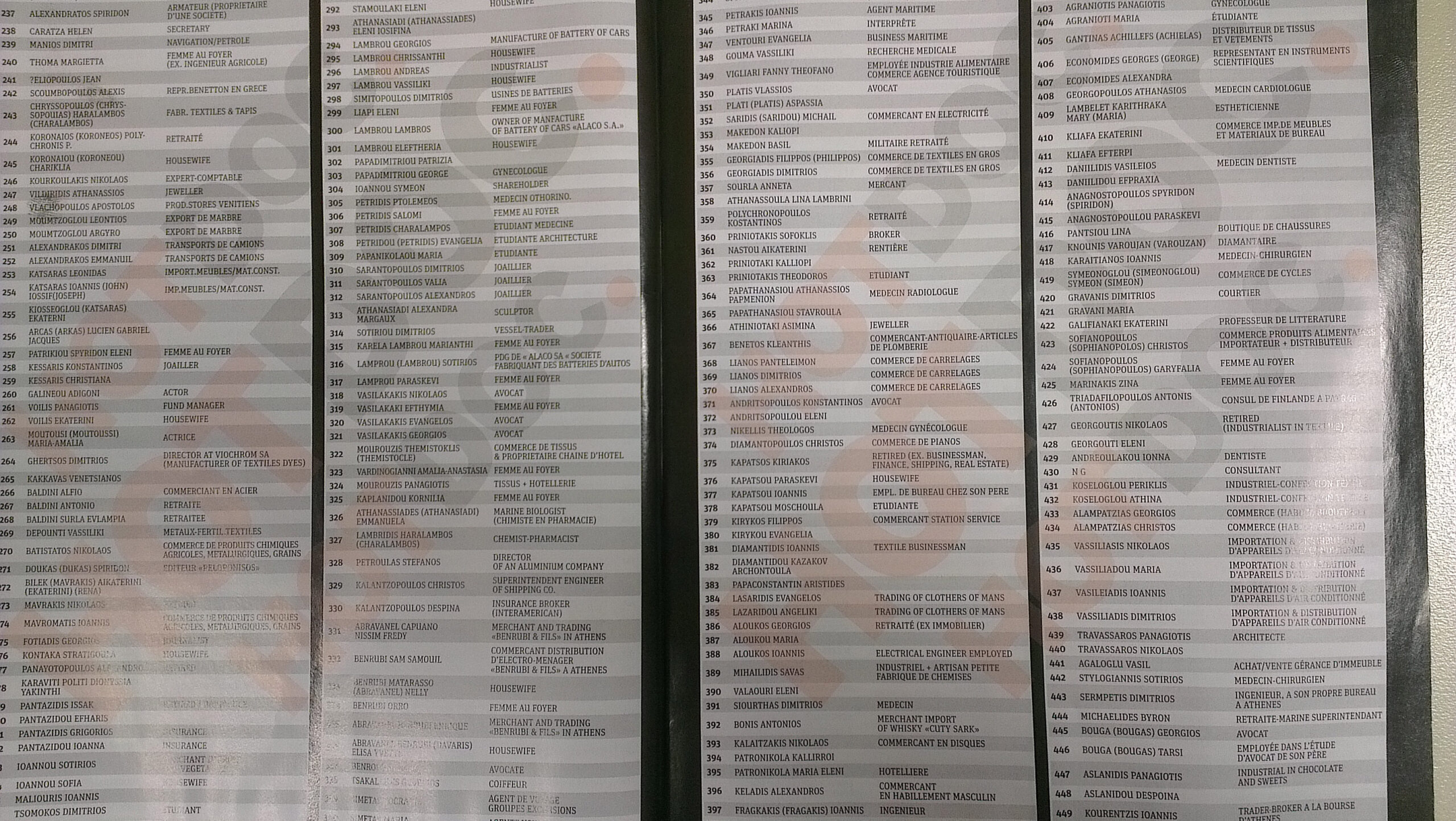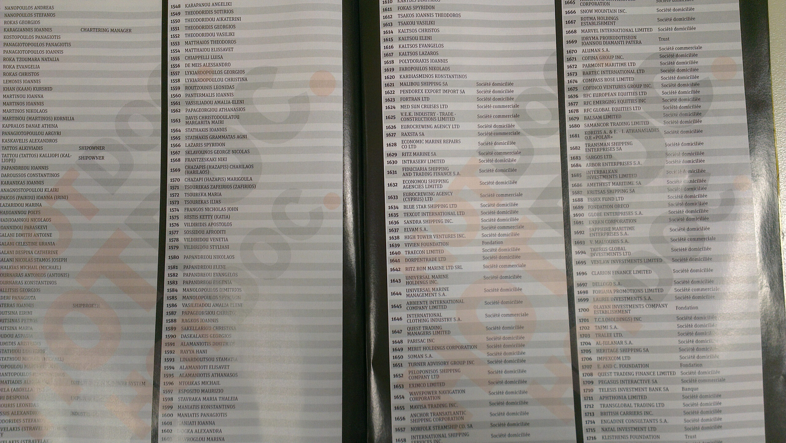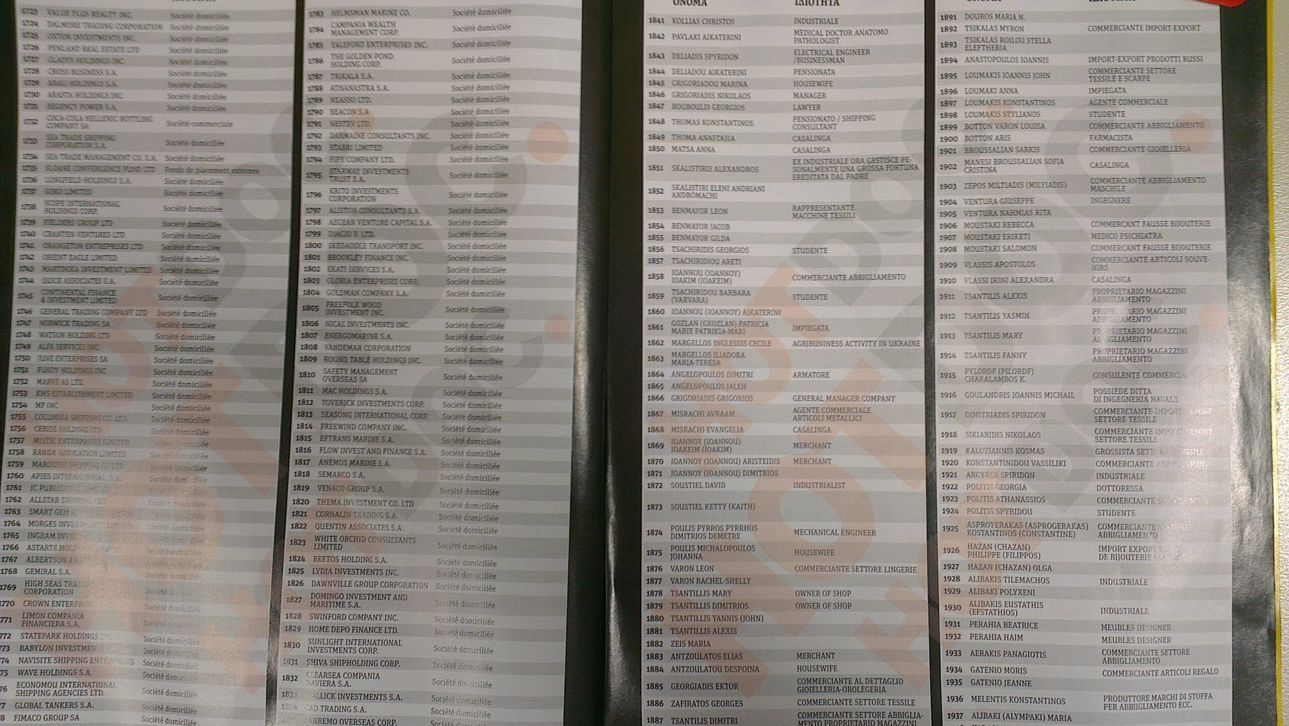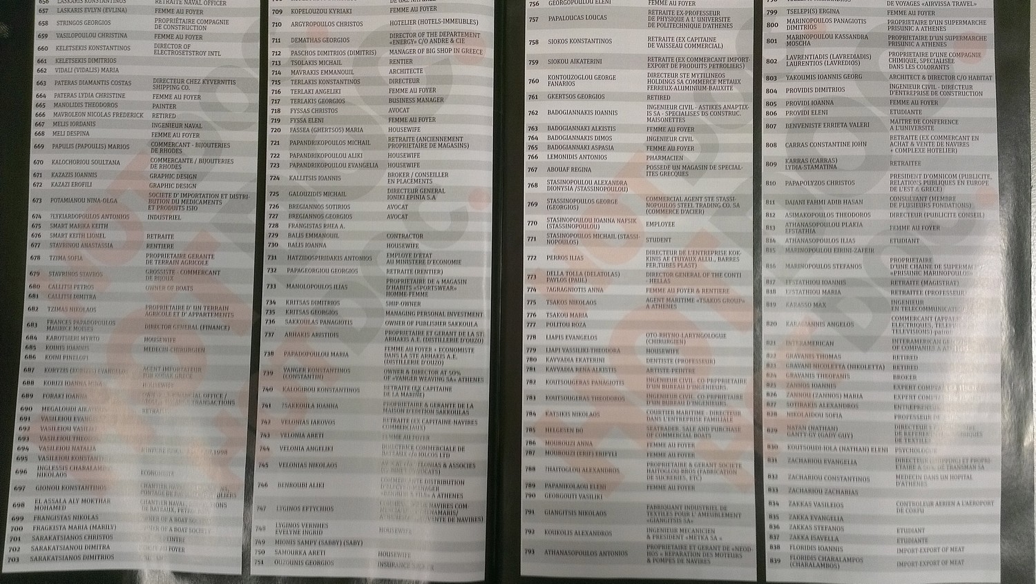 Στη λίστα, που σε καμία περίπτωση δεν αποτελεί απόδειξη διάπραξης παράνομων ενεργειών από τα 2059 ονόματα που αναφέρονται, περιλαμβάνονται επιχειρηματίες, δημοσιογράφοι, πολιτικοί, εκδότες αλλά και φοιτητές, έμποροι και πολλοί κοσμηματοπώλες.
